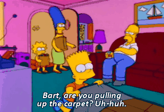 Bart, are you pulling up the carpet? Uh-huh. Why are you letting him do this?