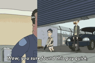 Wow, you sure found this guy quick, Uh, yeah, because l’m a good detective. Look, Babylegs, it’s the criminal, Oh, fuck it. l’m the killer. l’m running, l’m running real quick,