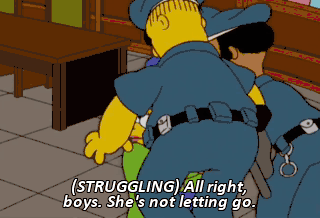 (STRUGGLING) All right, boys. She's not letting go. Make the switch. (RALPH HUMMING) (MARGE SOBBING) Your eyes need diapers. Your eyes need... That's good, Ralphie.