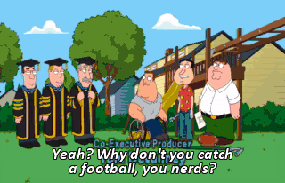 Yeah? Why don't you catch a football, you nerds?