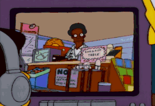 Huh? Don't be alarmed, Apu. just go about your daily routine like I'm not wearing the hat. Your headgear seems to be emitting a buzzing noise, sir. Perhaps you have a bee in your bonnet. Bee?