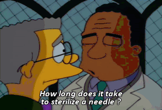 How long does it take to sterilize a needle ? A few seconds. Skip it ! just leave me enough to get home.