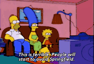 This is terrible. People will start to avoid Springfield. But what can I do? I'm just-- one-- one man. I think we should call a town meeting. If we don't do something soon, we won't get any tourists at all.