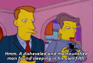 Hmm. A disheveled and malnourished man found sleeping in his own filth. Seems confused and dehydrated.