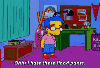 Ohh! I hate these flood pants. Hey, they're working! My feet are soaked, but my cuffs are bone-dry! Everything's comin' up Milhouse!