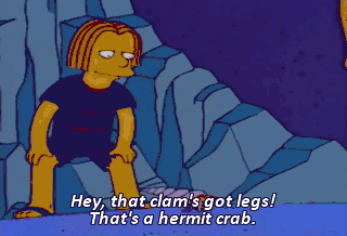 Hey, that clam's got legs! That's a hermit crab.