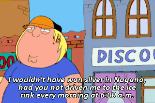 I wouldn't have won silver in Nagano, had you not driven me to the ice rink every morning at 6:00 a.m.