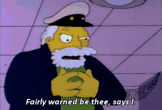 Fairly warned be thee, says I. Huh? Hey! Hey! Hey! But the sign said, "All you can eat."