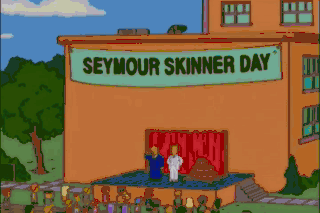 of your 20 years as interim principal... I hereby dedicate the Seymour Skinner Parking Annex. Did they have to guess the date of my death? Can't you be a team player just once?