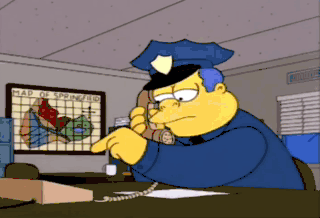 Wiggum. Yeah, right, mister. Mm-hmm. An elephant just knocked over your mailbox. Okay.
