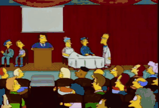 Fortunately, we have a plan. Professor Frink? Hi. Good evening, ladies and-- Quit stalling! What's the plan? All right, just take your seat. just take your seat.