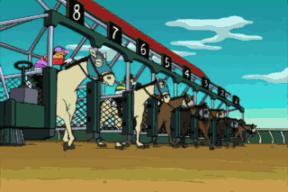 Come on, number six! Move it! Don't do that! What are you-- Man, it's contagious. And the winner is Harry Trotter... by the entire racetrack!