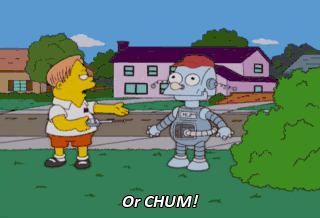 Or CHUM! Don't hold my hand. It's creepy. Hush, my pet. Now let us gather our rosebuds while we may.