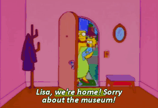Lisa, we're home! Sorry about the museum! You'd better go up and apologize. But my apologies always sound so forced. DO it!