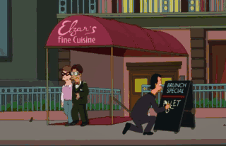 I guess what I'm saying is, the next time you almost die, I want it to be as my wife. (GASPS) The clam, Elzar. Clam, bam, thank you, ma'am. Fry?