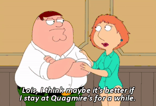 Lois, I think maybe it's better if I stay at Quagmire's for a while.