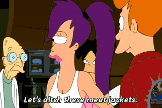 Let's ditch these meat jackets. Whoa! Cool! (IMITATING TERMINATOR) Hasta la vista, wiener. (IMITATING TERMINATOR) We'll be back, for our stuff. Why did their voices change?