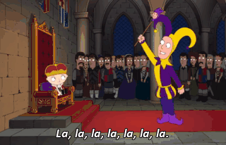La, la, la, la, la, la, la. Look at me! Ooh-ooh-ooh. In my office. Now.