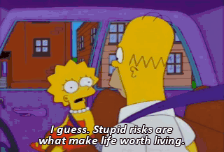 I guess. Stupid risks are what make life worth living. Now, your mother, she's the steady type, and that's fine in small doses. But me, I'm a risk taker. That's why I have so many adventures.