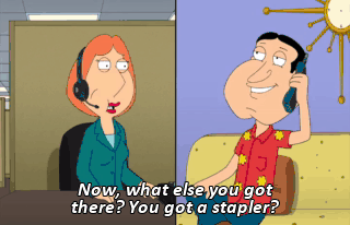 Now, what else you got there? You got a stapler? Uh-huh.