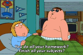 You do all your homework? Finish all your subjects? - Yes, sir. - Good. Just checking. Have a good night, Son. PETER: You still awake, honey? STEWIE: What the deuce?