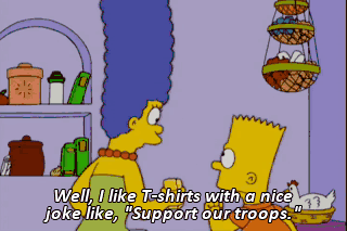 Well, I like T-shirts with a nice joke like, "Support our troops."