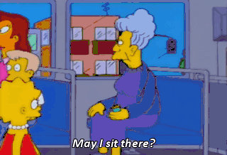May I sit there? Of course not, honey. That seat's for my coin purse. May I have that seat? Yes, if you can answer me these questions three. Question the first-- Never mind.