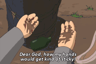 Dear God, how my hands would get kind of sticky! (SCREAMING IN TERROR) (LAUGHING MANIACALLY) No one should have to suffer the way I suffered!