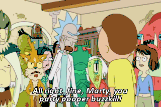All right, fine, Marty, you party pooper buzzkill! Boo, boo! Marty sucks! Baal, You suck, whatever your name is. RICK: Marty, you're the worst, Marty,