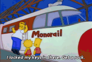 I locked my keys in there. Get a rock. Ladies and gentlemen, nothing brings out the stars... like the maiden voyage of a monorail. Everyone's here, from recently outed leading man Dash Calhoun...