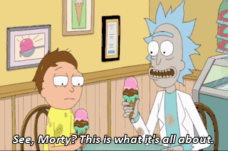 See, Morty? This is what it's all about. This is why we do what we do. - Uh-Huh. - Ew! What the hell? Jesus! There's flies in my ice cream.