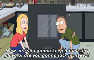 Now, are you gonna keep hating this playa or are you gonna jack my steez? Okay, you're just making stuff up now,
