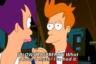 (BLOWS RASPBERRY) What a load a mush! I've had it.