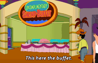 This here the buffet. Ooh! Perfect timing! It's the weekly changing of the shrimp!