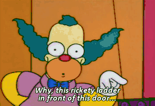 Why, this rickety ladder in front of this door... is the perfect place for this priceless Ming vase. Eh? Eh? I didn't do it.