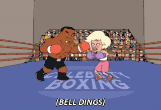 (BELL DINGS) (CROWD CHEERING) Come here, young man. I'm gonna bop you one. (CROWD CHEERING) - She's getting beat! - No, she's getting mad. You ain't so tough, young man.