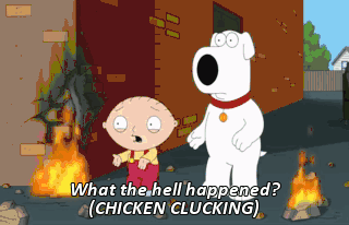 What the hell happened? (CHICKEN CLUCKING) (CLUCKS) (PETER SCREAMING)