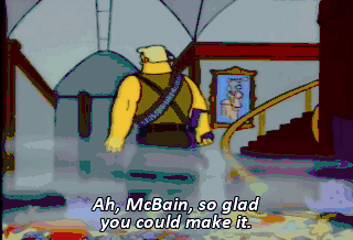 Ah, McBain, so glad you could make it. Have a salmon puff. All right. That is one evil dude.