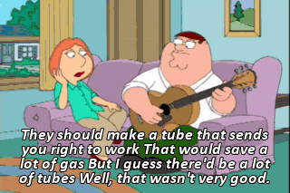 They should make a tube that sends you right to work That would save a lot of gas But I guess there'd be a lot of tubes Well, that wasn't very good.