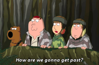 How are we gonna get past? All right, there's only a few of them. Chewie and I'll take care of those guys, you stay here.