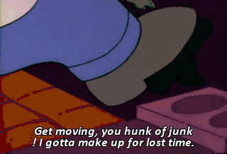 Get moving, you hunk of junk ! I gotta make up for lost time.