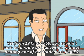 Yet from 1945 to 1960, you couldn't turn on a radio or A television without hearing one of her trademark jinglES.