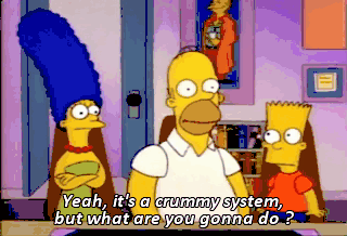 Yeah, it's a crummy system, but what are you gonna do ? Oh, no. He can't mean that. My wife thinks you want me to pay for it.