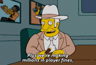 Plus we're making millions in player fines, which I'm gonna use to bankroll a musical about the J. Geils Band.