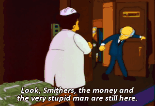 Look, Smithers, the money and the very stupid man are still here.