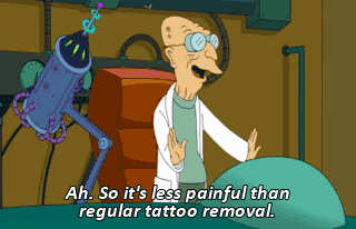 Ah. So it's less painful than regular tattoo removal. Nobody said that.