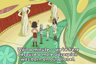 Wait a minute -- we're here because a male Gazorpian was born on our planet.