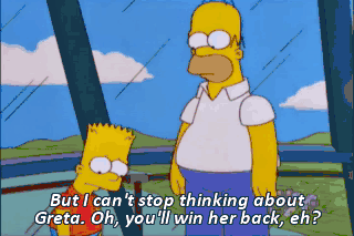 But I can't stop thinking about Greta. Oh, you'll win her back, eh?