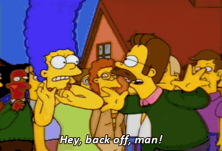 - Hey, back off, man! - Oh, okay, dude! I wouldn't want you to have a cow, man!