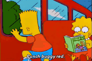 Punch buggy red. Ow! You are such an immature- - Punch buggy white. - Ow! Stop fighting! He started it.